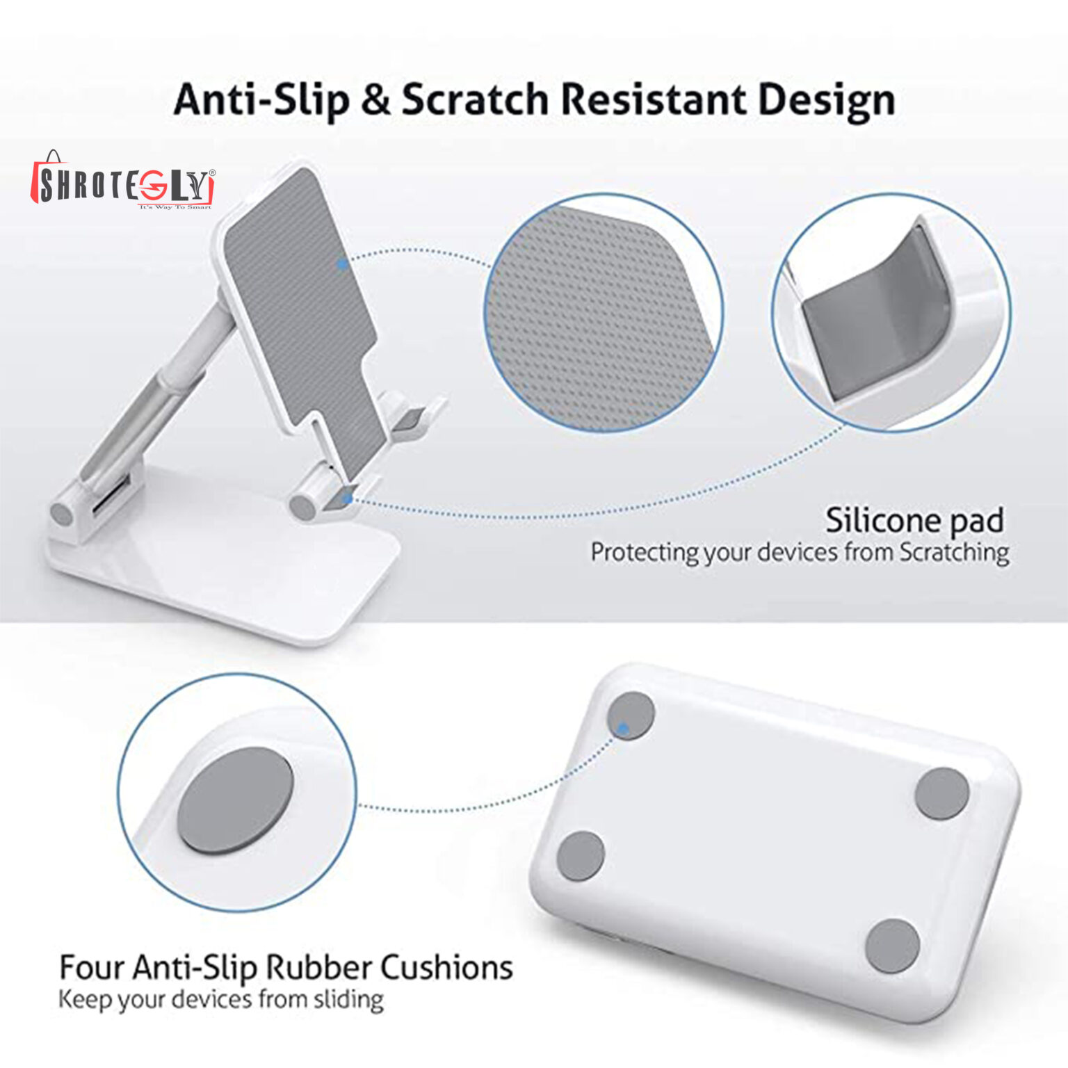 Mobile Holder Stand Adjustable and Foldable for Phones ( White ) Pack of 1