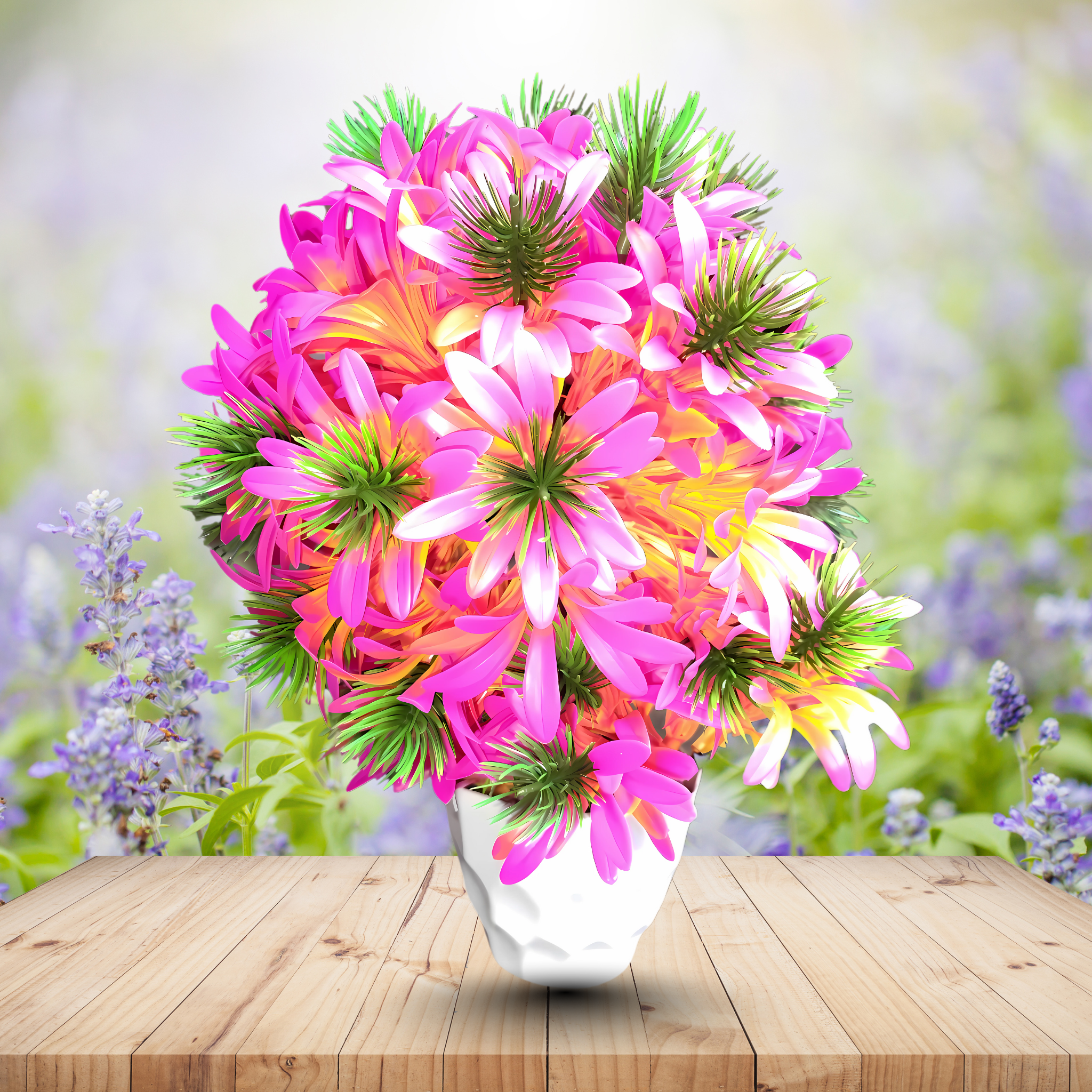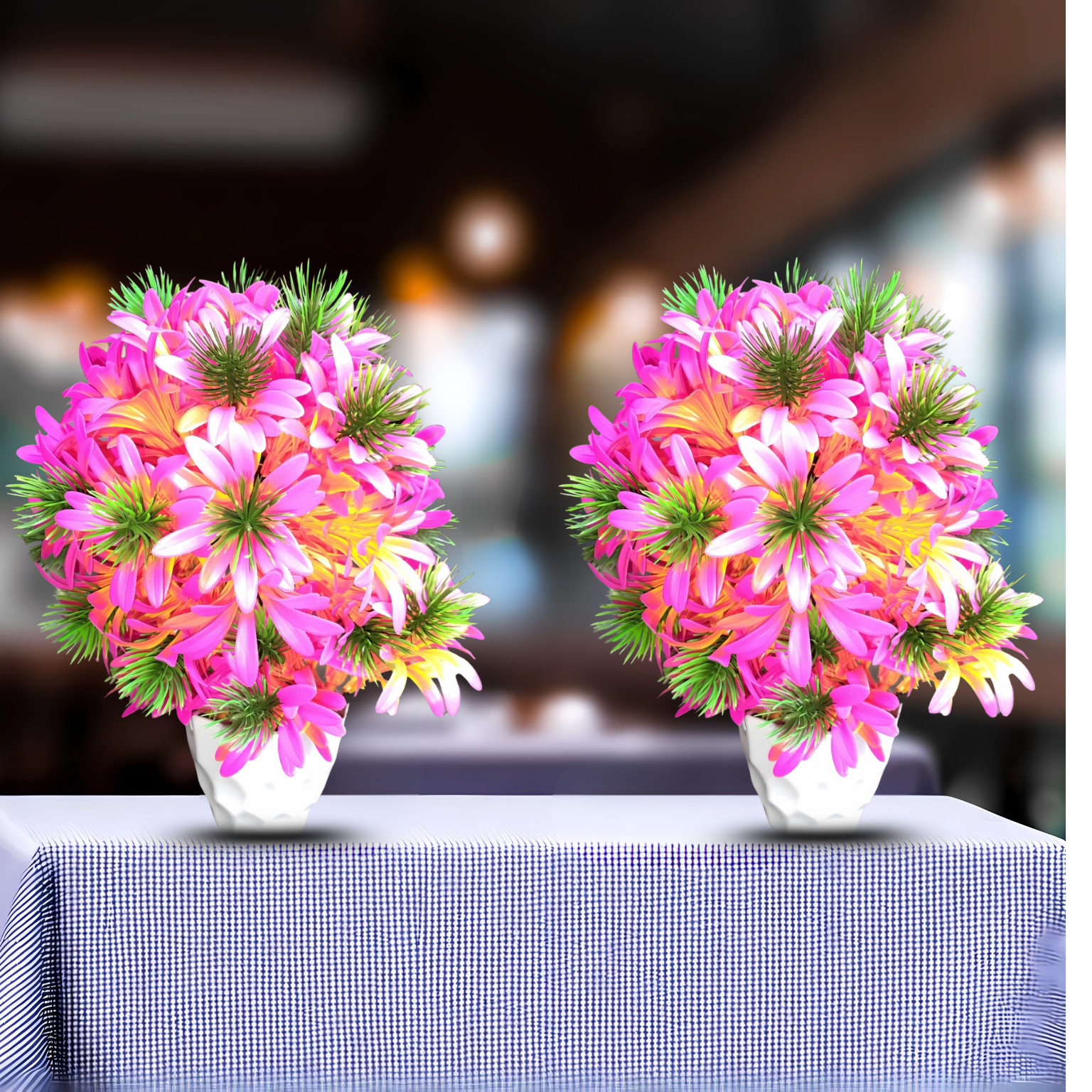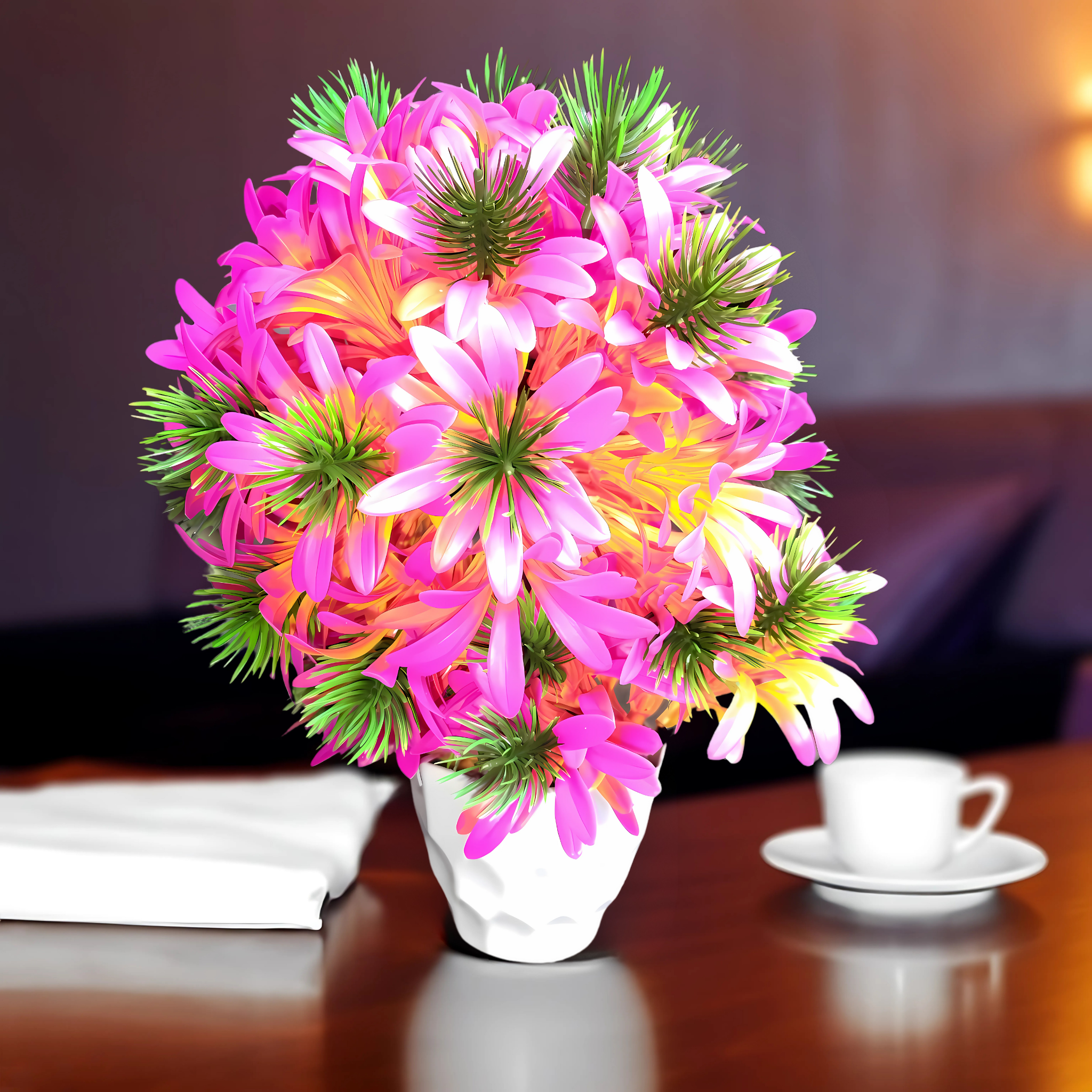 Bring home this premium artificial flower bouquet to beautify your home or office décor. The stunning pink and yellow blooms combined with lush green leaves create a natural and refreshing look. The included white designer vase adds an extra touch of elegance.
